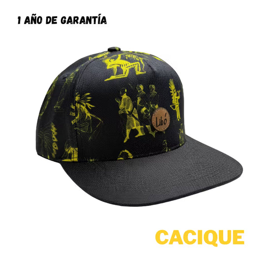 LIBÓ - Gorra Snapback Cacique Unisex, Visera Flexible (Plana o Curva), con Estampado Inspirado en Líderes Ancestrales, Cierre Ajustable 35% descuento
